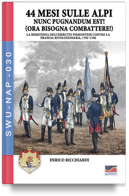 44 mesi nelle Alpi descrive come l’esercito piemontese resistette all’ondata tricolore che si diffuse in tutto il continente sulla scia della Rivoluzione francese dal 1792 al 1796. Il libro illustra come Vittorio Amedeo III di Savoia dovette riorganizzare il proprio esercito per affrontare la minaccia francese e descrive in dettaglio la resistenza spesso eroica e ostinata delle truppe negli alti passi delle Alpi. Le unità piemontesi, le uniformi, le bandiere e le armi sono descritte e riccamente illustrate con 29 pagine a colori di opere d’arte contemporanee e belle tavole di Emanuele Manfredi.