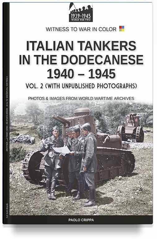 Until a tew years ago, the history of the CCCXII Mixed Tank Battalion of the Aegean was almost unknown and surrounded by errors. Extensive research led to the publication of the first comprehensive study on tank crews in the Dodecanese in 2022, paving the way for further investigation. In the following years, new data emerged, including the presence of a Tank Battery in Castelrosso, active from 1940 until the Armistice. The role of the unit after 8 September 1943 was also revised: contrary to what was believed, some of its men took part in the fighting against the Germans, despite the obsolescence of their vehicles. A valuable collection of photographs from the collections of Sergeant Michele Morello and Lieutenant Rino Focherini has made it possible to document the symbols and equipment of the armoured vehicles. Finally, the volume offers a summary of the German Armoured Division “Rhodos”, which took over the garrison of the Dodecanese in 1943, accompanied by images of its armouredcomponent.