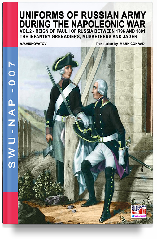 This volume is related to the Russian Army during the zar Alexander I era, and are about the Guards Infantry regiments in use from 1801 to 1825. Compiled at Saint Petersburg during the year from 1837 and 1851, the Historical Description of the Clothing and Arms of the Russian Army has had an enormous impact and great importance for the study on the history of Russian costume and uniformology development over the past centuries. There are various ancient editions of the work but Mark Conrad’s translation is the first one and the best, remaining true to the original structure and essential style of the text. Conrad’s comprehensive translation is an indispensable resource for today’s historian, strategists, and scholars. Viskovatov’s enormous work is based on a great quantity of archival documents and contains four thousand colored and b/w illustrations. It is composed by 30 or 34 volumes (1st edition 1-30, St. Petersburg, 1841-62, and 2nd edition Vols. 1-34, St. Petersburg – Novosibirsk – Leningrad, 1899-1948). The topics discussed start from the early czars until the late nineteenth century. Our new edition has enriched the book with the plates: we revised and colored many of the images so far available just in black and white, as well we found some rare color plates with the collaboration of private collectors. These, together with the first ever English translation, make our collection exclusive and of great value.